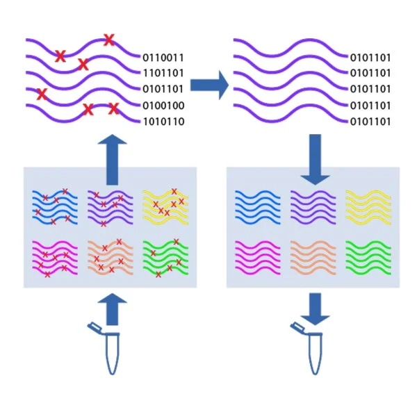 Screening millions of virtual colonies enables error-free gene synthesis.